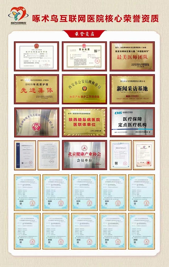 企业文化融入服务每一环:品牌寓意“啄除顽疾”,以精湛中医术艺与现代科技守护糖友健康。核心理念是以患者为中心,科技赋能基层医疗、数据驱动服务创新,坚持合规经营、创新发展。医院同步成立碑林区首家互联网医院妇女联合会,党建引领医疗服务高质量发展。